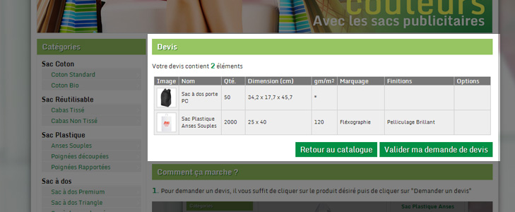 3. This will then bring you to a page with a summary of quotes you want. You can then continue browsing to add new items or validate the current quote.